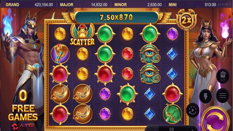 ATG戰神賽特是一款超人氣的線上老虎機遊戲,融合了古埃及神話元素和現代的遊戲設計。因為超高倍率以返還率而受到玩家們的喜愛,以下是主要特色和遊戲規格介紹: